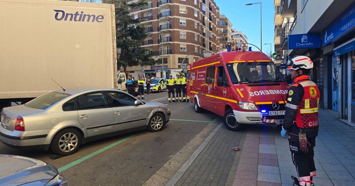 A car and a truck were involved in an accident this Tuesday afternoon on Villamayor Avenue. The driver of the first was trapped and needed the help of the Salamanca City Council firefighters to get out of the vehicle.