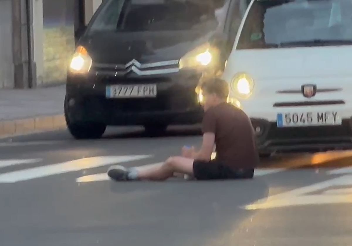 Unusual scene that occurred this Tuesday in Salamanca. Around 9:00 p.m. a young man sat down at an intersection in Canalejas in … full circulation, blocking traffic and putting their physical integrity at risk.